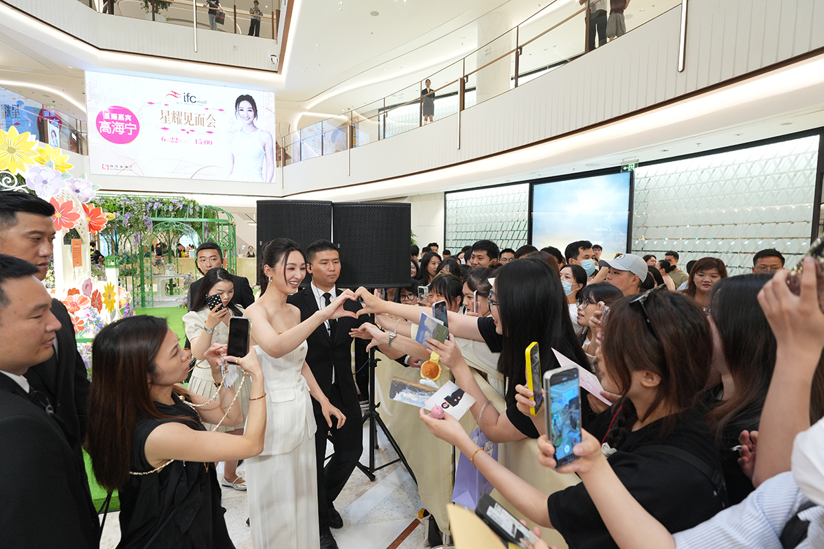 6月22日下午,中国香港影视女演员高海宁现身南京ifc商场一楼中庭,特别受邀出席星耀主题见面会,与南京观众朋友近距离互动。高海宁女士的现身吸引众多粉丝及媒体守候,一睹影星风采。活动现场,高海宁与粉丝近距离接触互动做游戏,掀起热潮,更至路易威登 (Louis Vuitton)、迪奥(Dior) 、梵克雅宝(Van Cleef & Arpels) 、巴黎世家(Balenciaga)及盟可睐(Moncler) 等多家店铺探店购物,盛赞南京ifc商场优质的购物环境和贴心细致的服务,以及良好的购物体验。