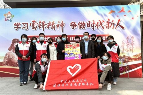 3月2日,中建三局三公司南京华贸国际中心项目青年志愿者服务队到工人新村社区开展“学雷锋爱心义卖”活动。